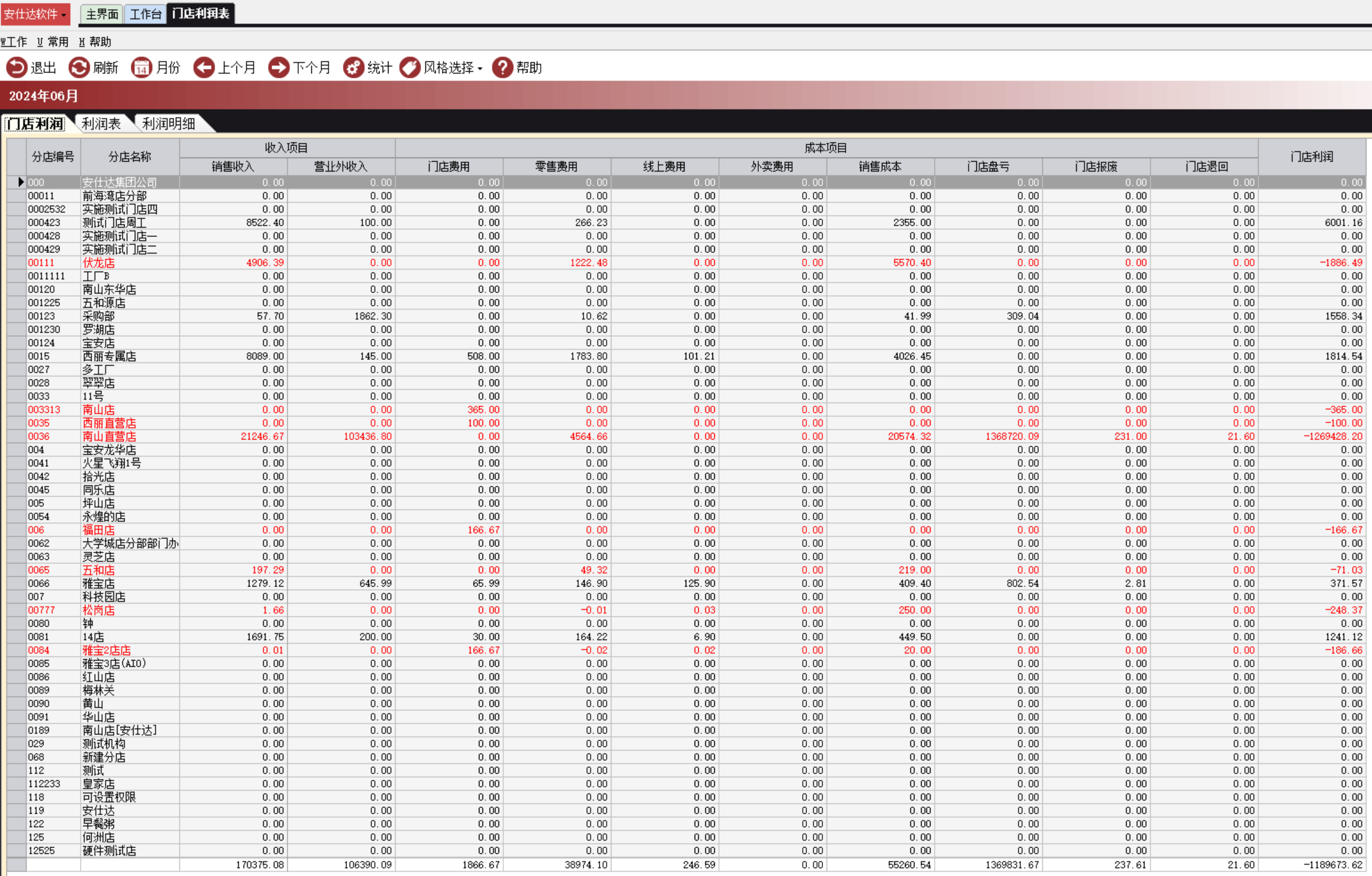 用于统计所有门店每月利润金额
