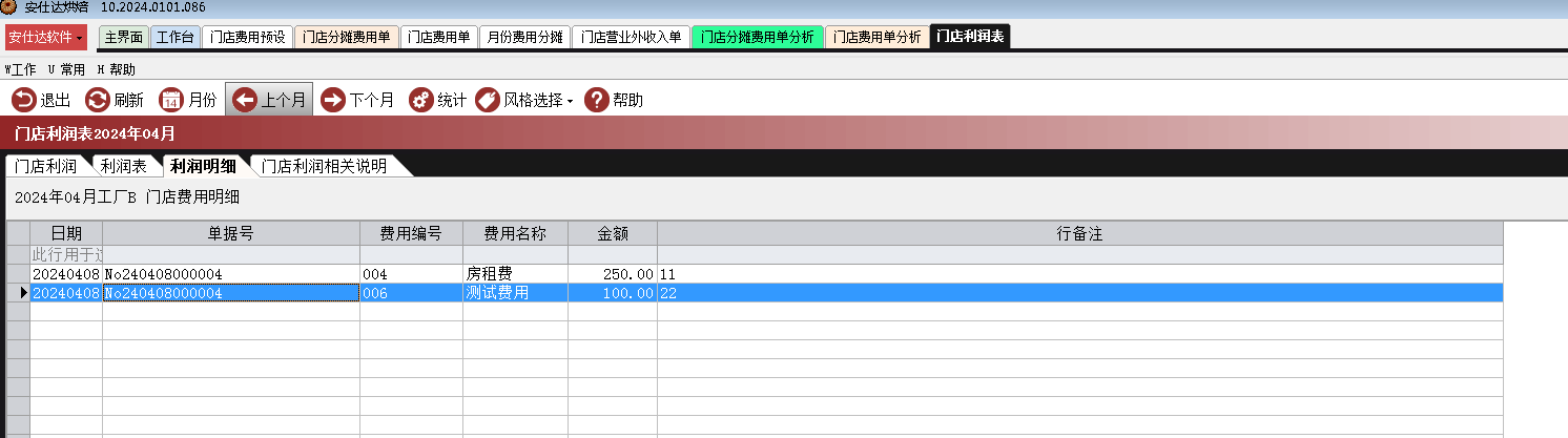 财务管理-->门店利润-->门店利润表