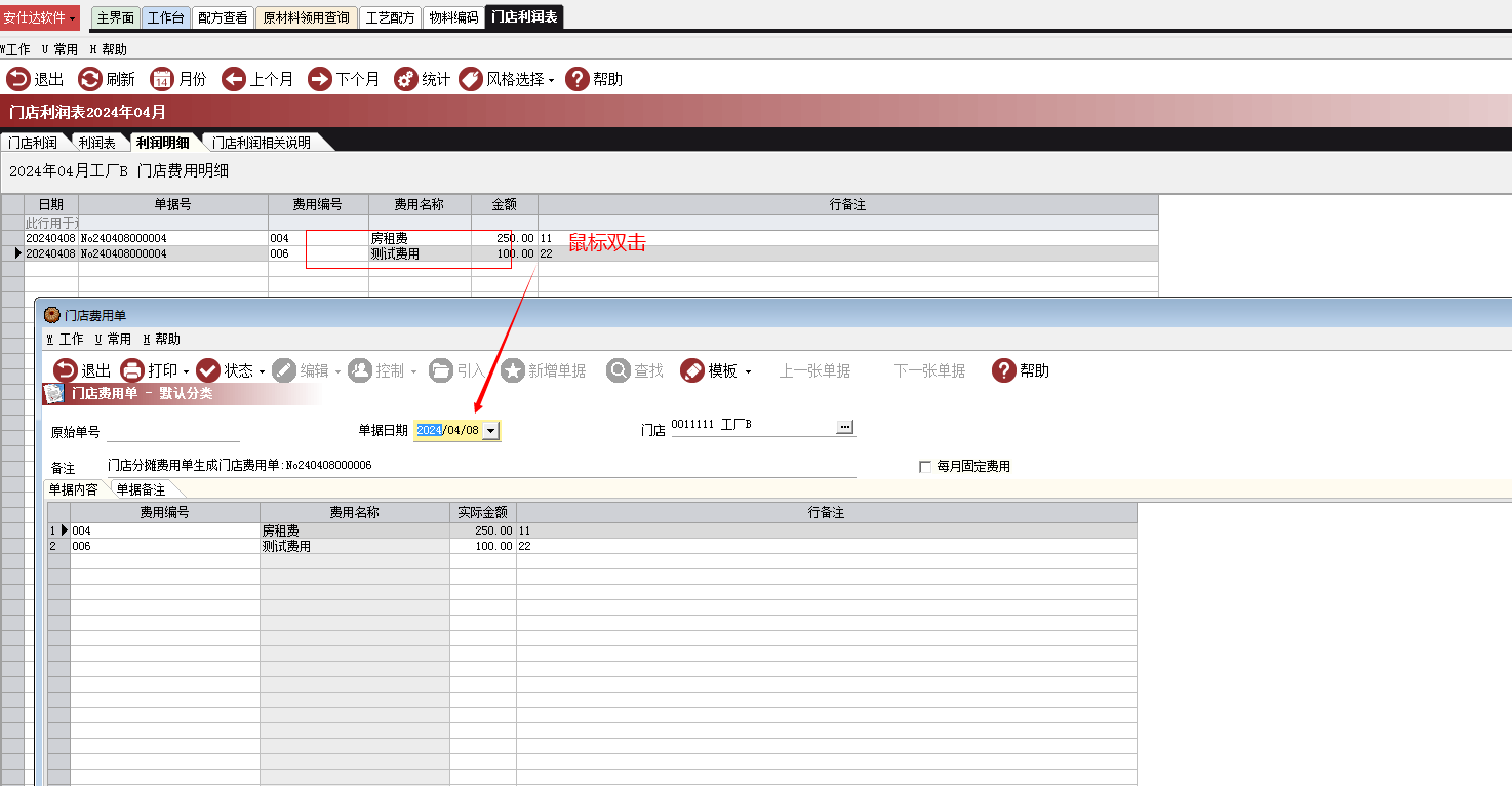 说明:所有明细支持鼠标双击单据,打开原单据