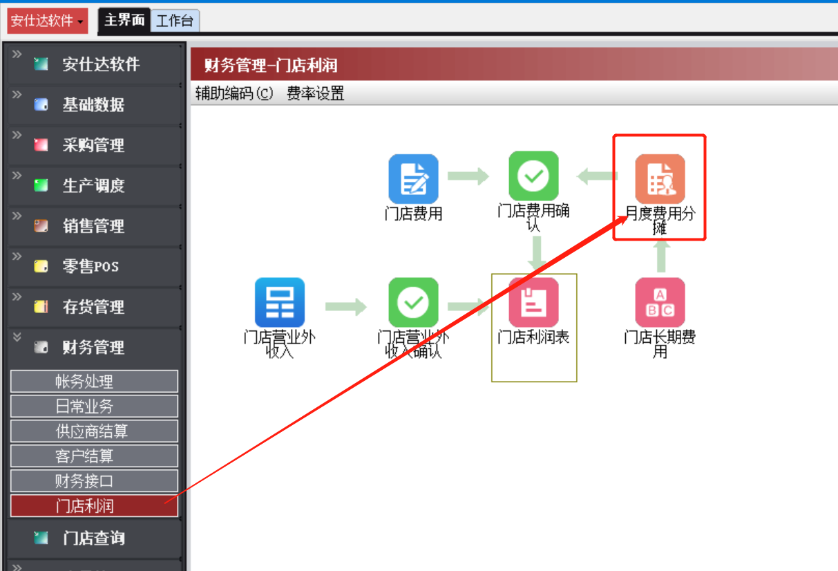 财务管理-->门店利润-->月度费用分摊
