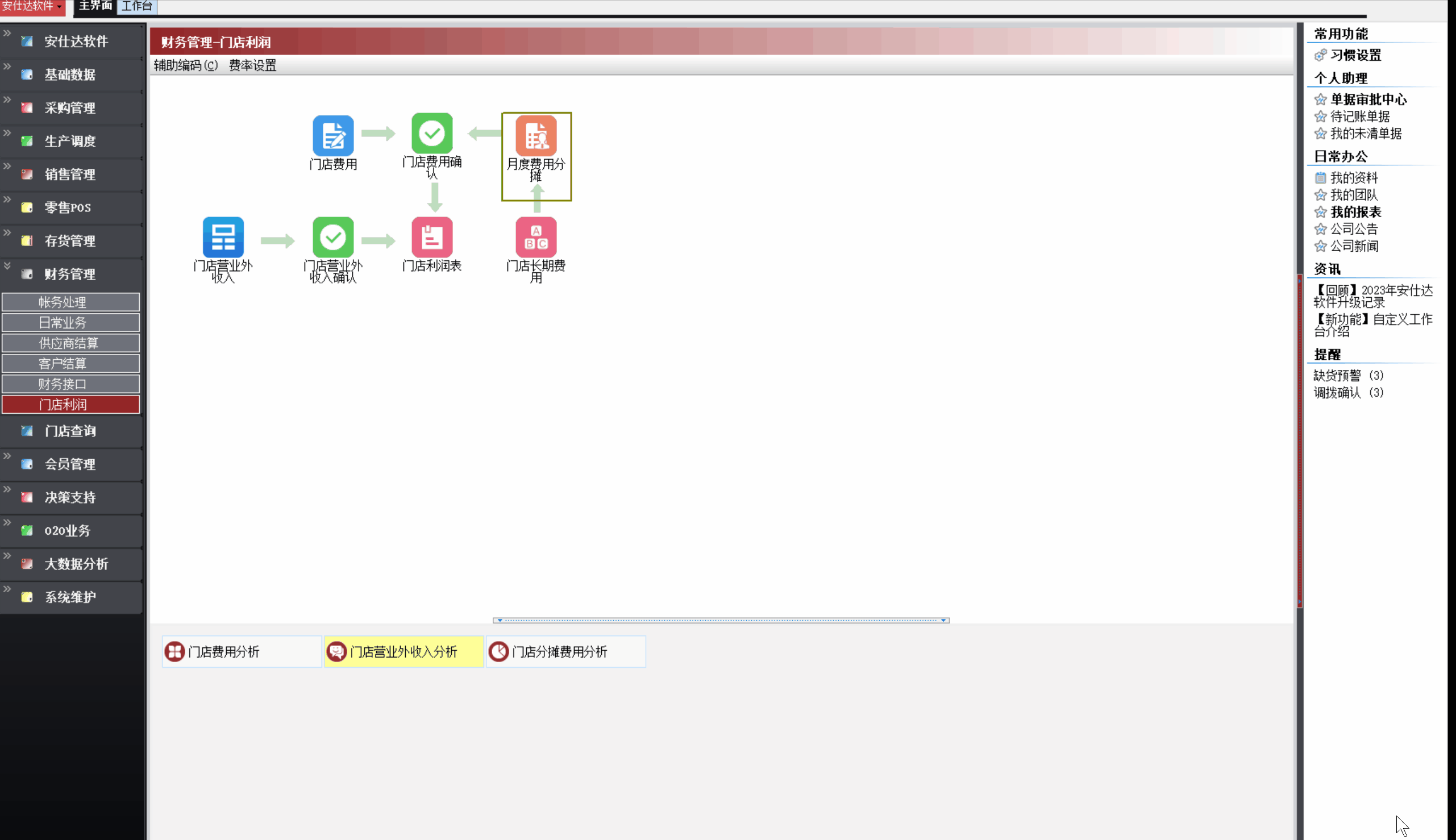 - 已分摊费用:用于记录当月已分摊生成门店费用单明细