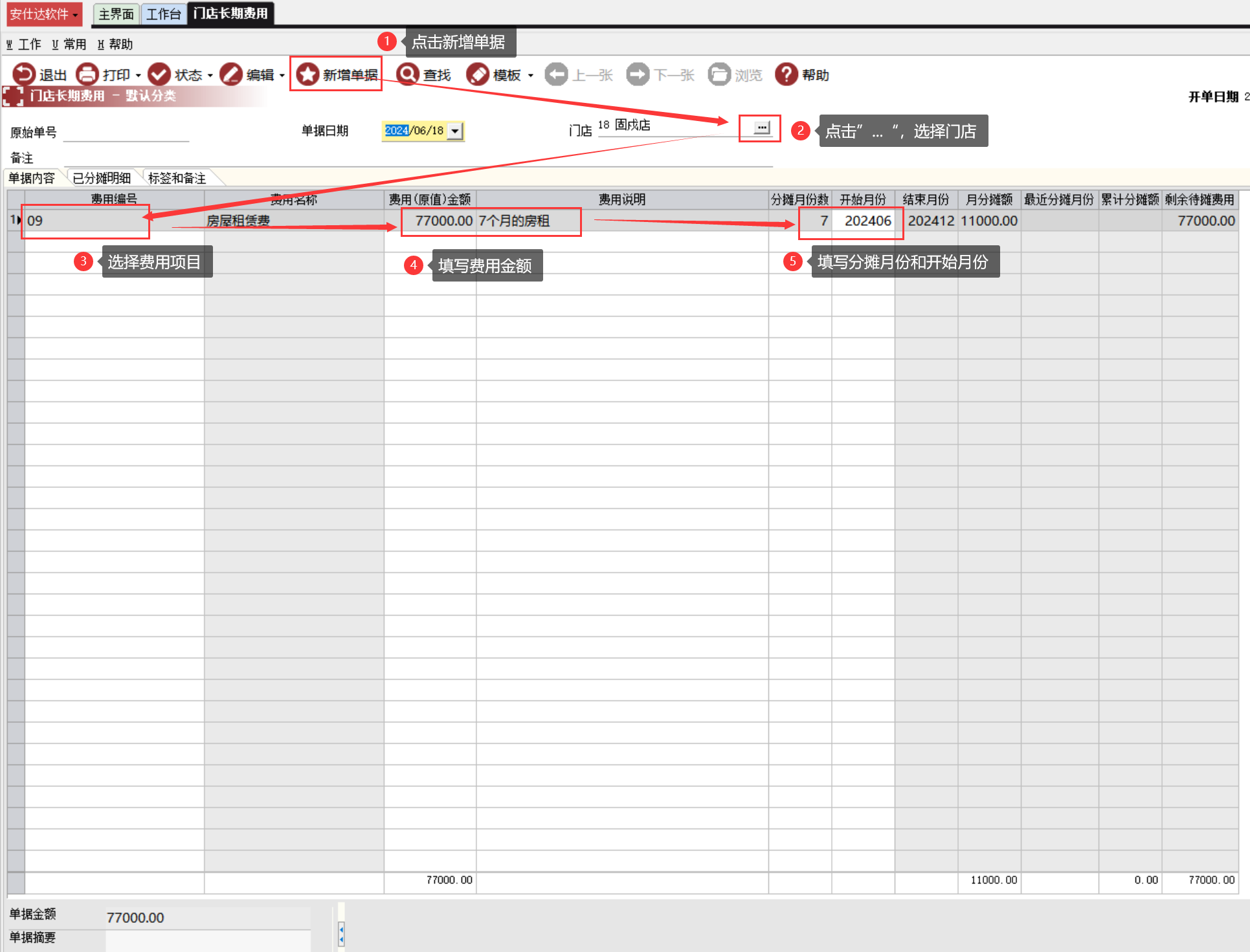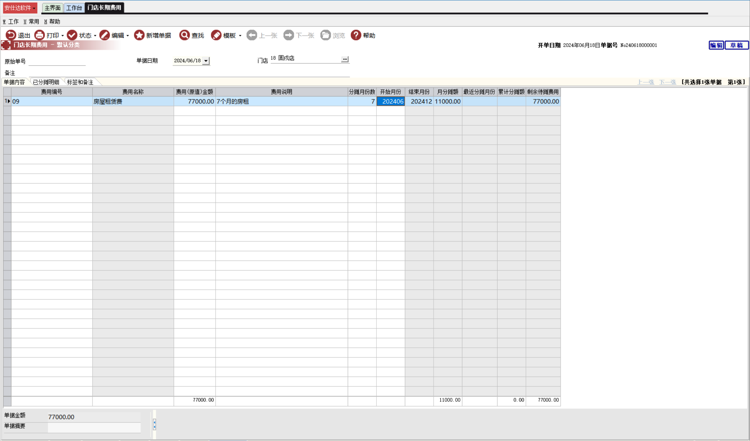 累计分摊额:显示已经分摊的金额(月份费用分摊单-费用分摊点击后才会显示)