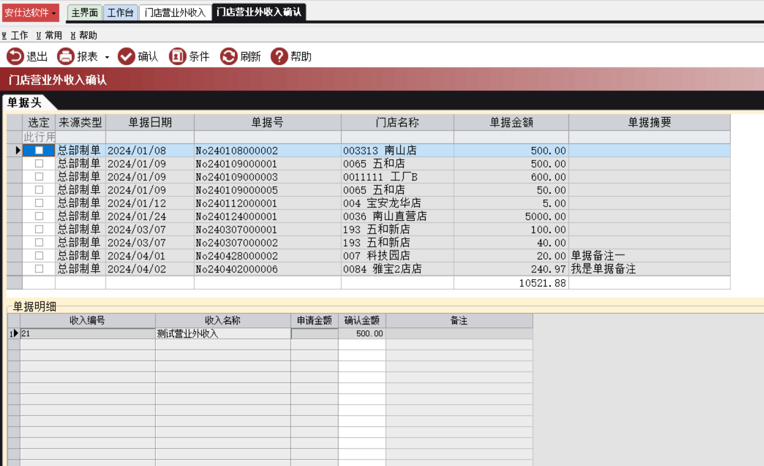 财务管理-->门店利润-->门店营业外收入确认